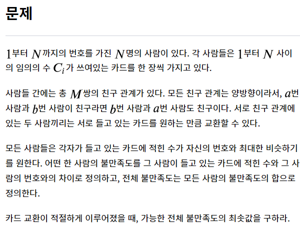 문제를 읽고 번호가 작은 사람에게 작은 수의 카드가 번호가 큰 사람에게는 큰 수의 카드를 매칭 시키면 최소 불만족도를 구할 수 있을 거라고 생각하고 단순하게 오름 차순으로 정렬하여 문제를 해결하고자 했다.