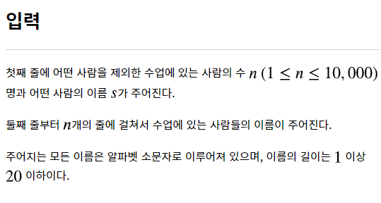 모든 이름이 소문자로 주어지기 때문에 특별히 고려해야 할 사항이 없었다.