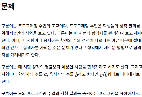 어려운 문제는 아니었고 평균 값을 저장하는 average변수의 타입에만 주의하도록 하자.